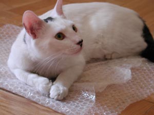 Ni el colchón de plumas más fino, puede compararse con la delicadeza de un buen plástico. Y si además este es de "pompas" que estallan al más leve retozar, no hay mayor placer y comodidad para un gato.